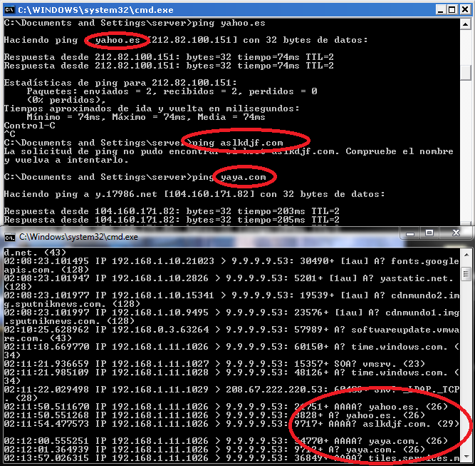 Aquí podemos ver la opción <dns> en funcionamiento.